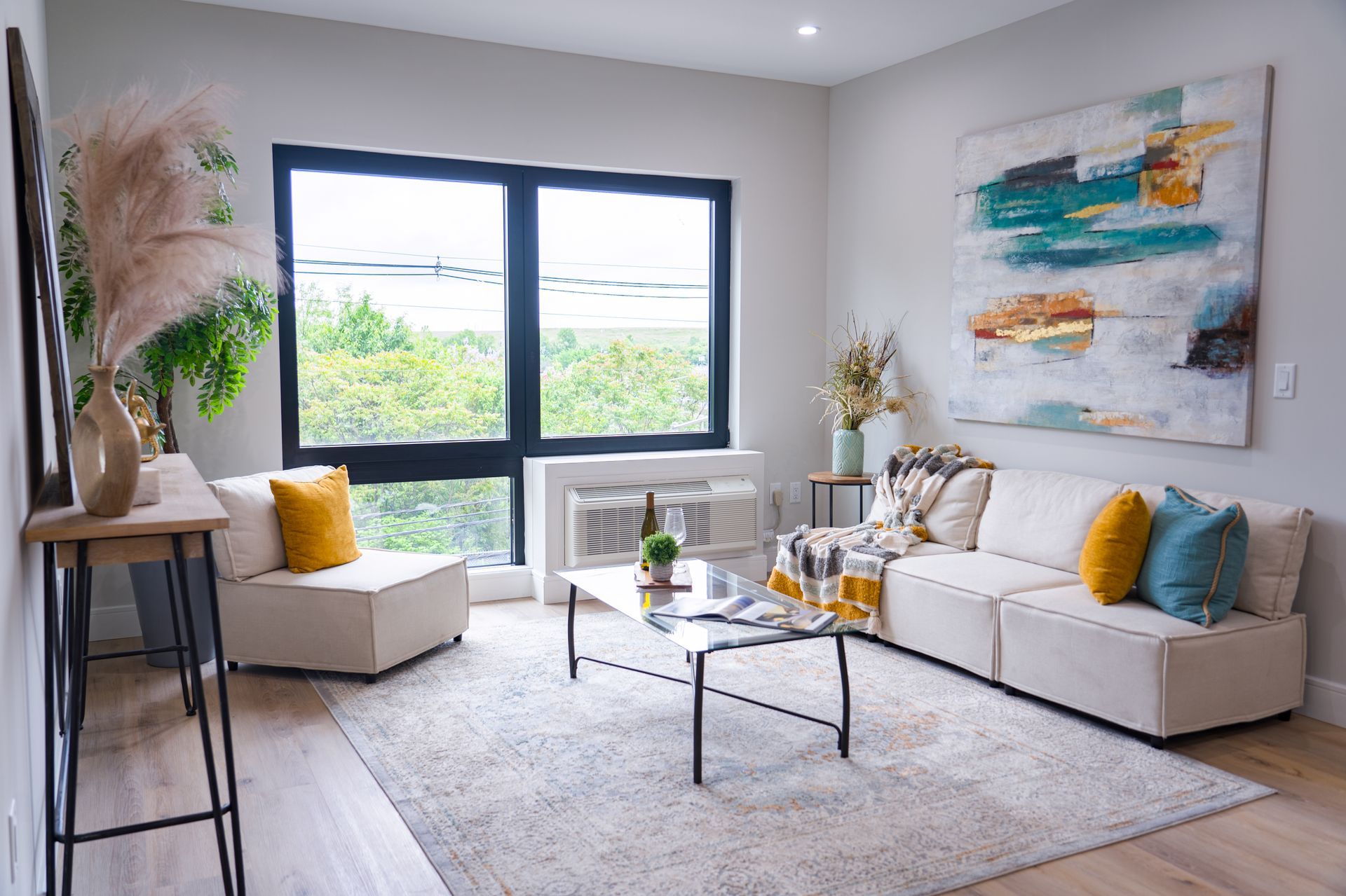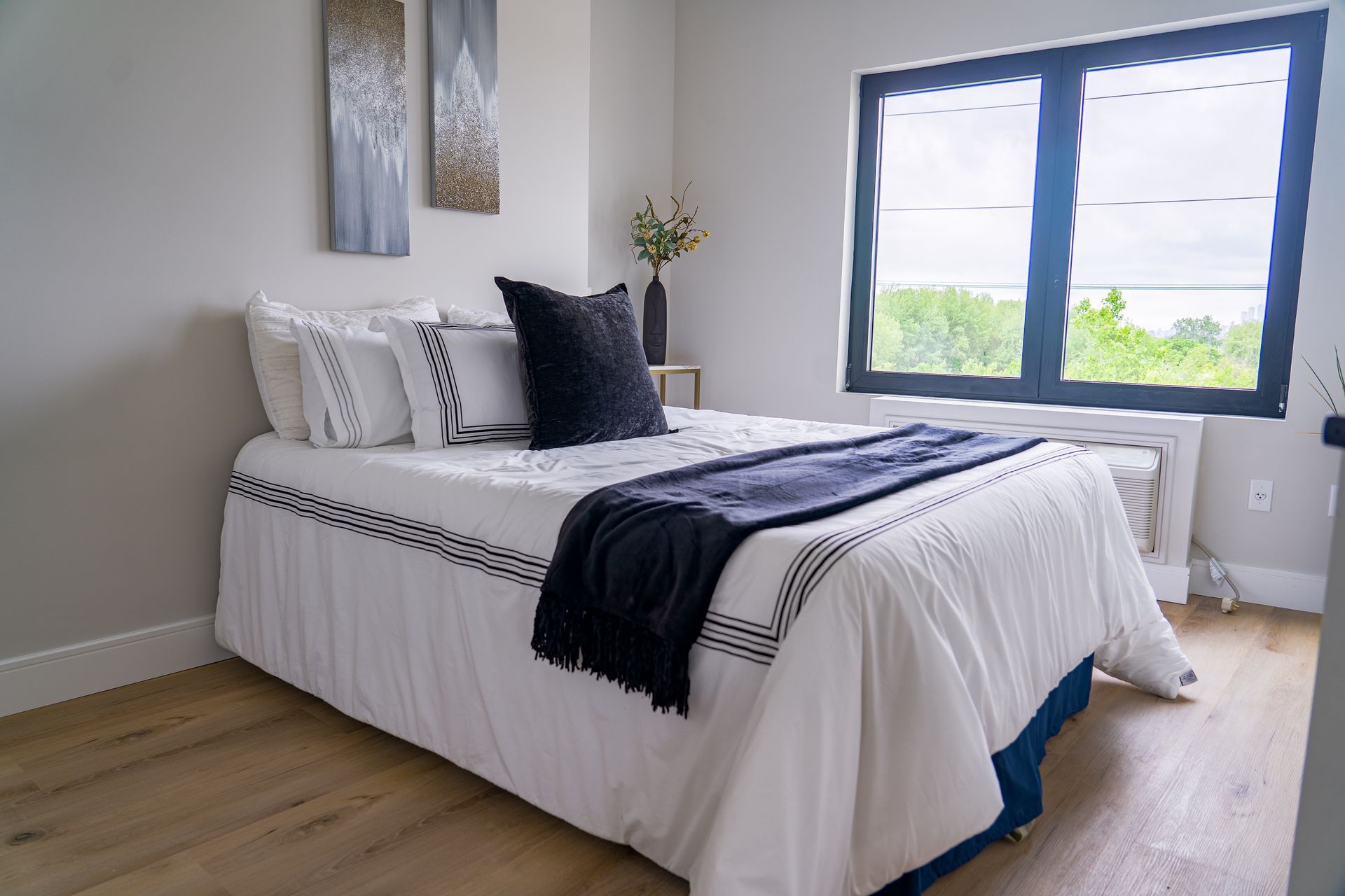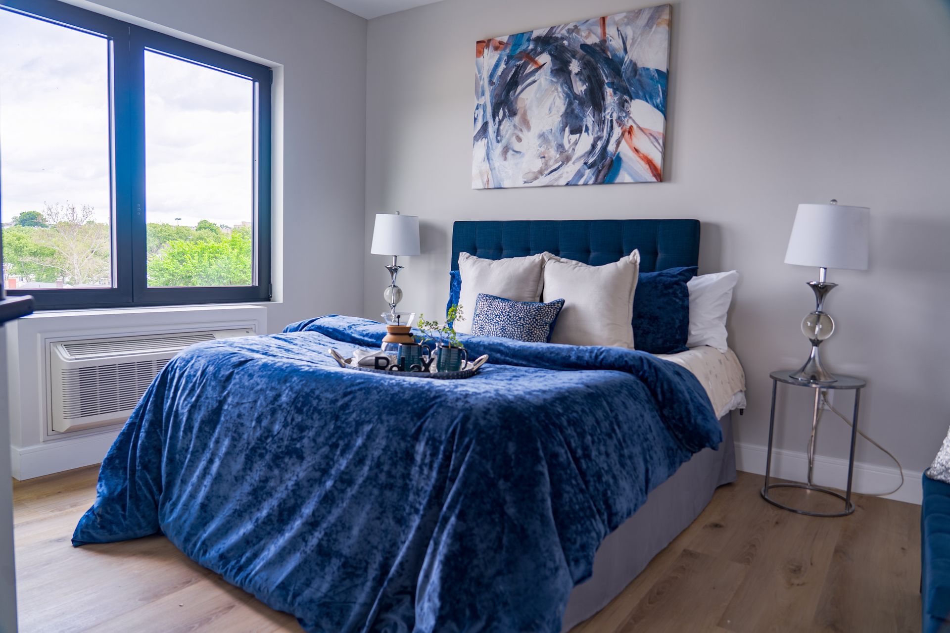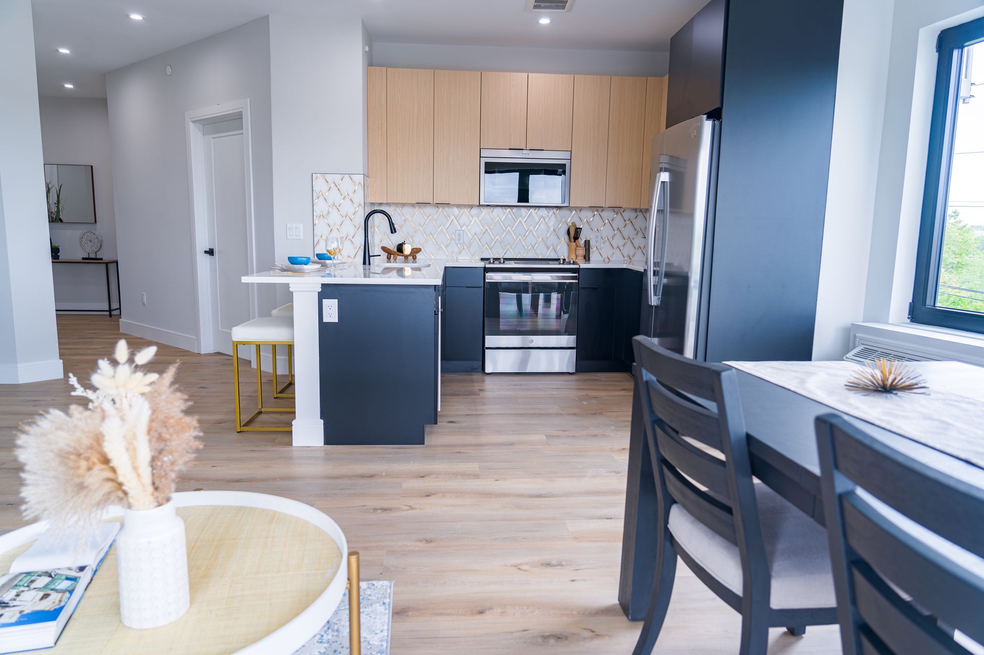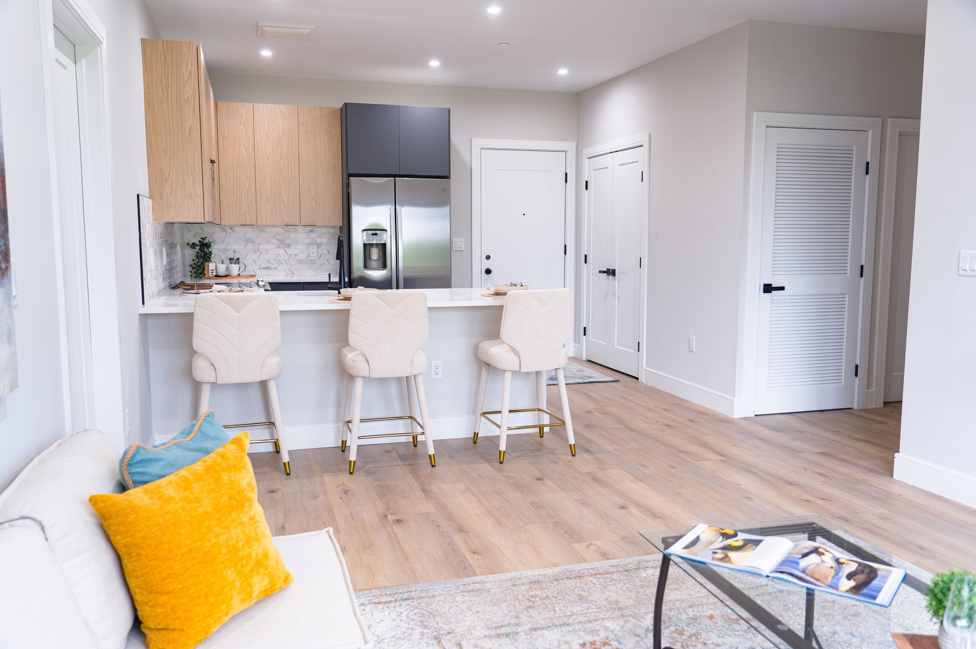 Boasting sleek, contemporary design, all residences include high-end finishes and state-of-the-art amenities. Residents can expect walk-in closets, kitchen with quartz countertops and stainless-steel appliances that open up to the spacious dining/living room areas with LVT Wood Flooring. They also feature GE Appliances including microwave, stove range, dishwasher and in-unit washer & dryer. The bathrooms all have LED mirrored medicine cabinets by the sinks and each room is controlled by a state of the art PTAC Heating and Cooling System, for living comfort.