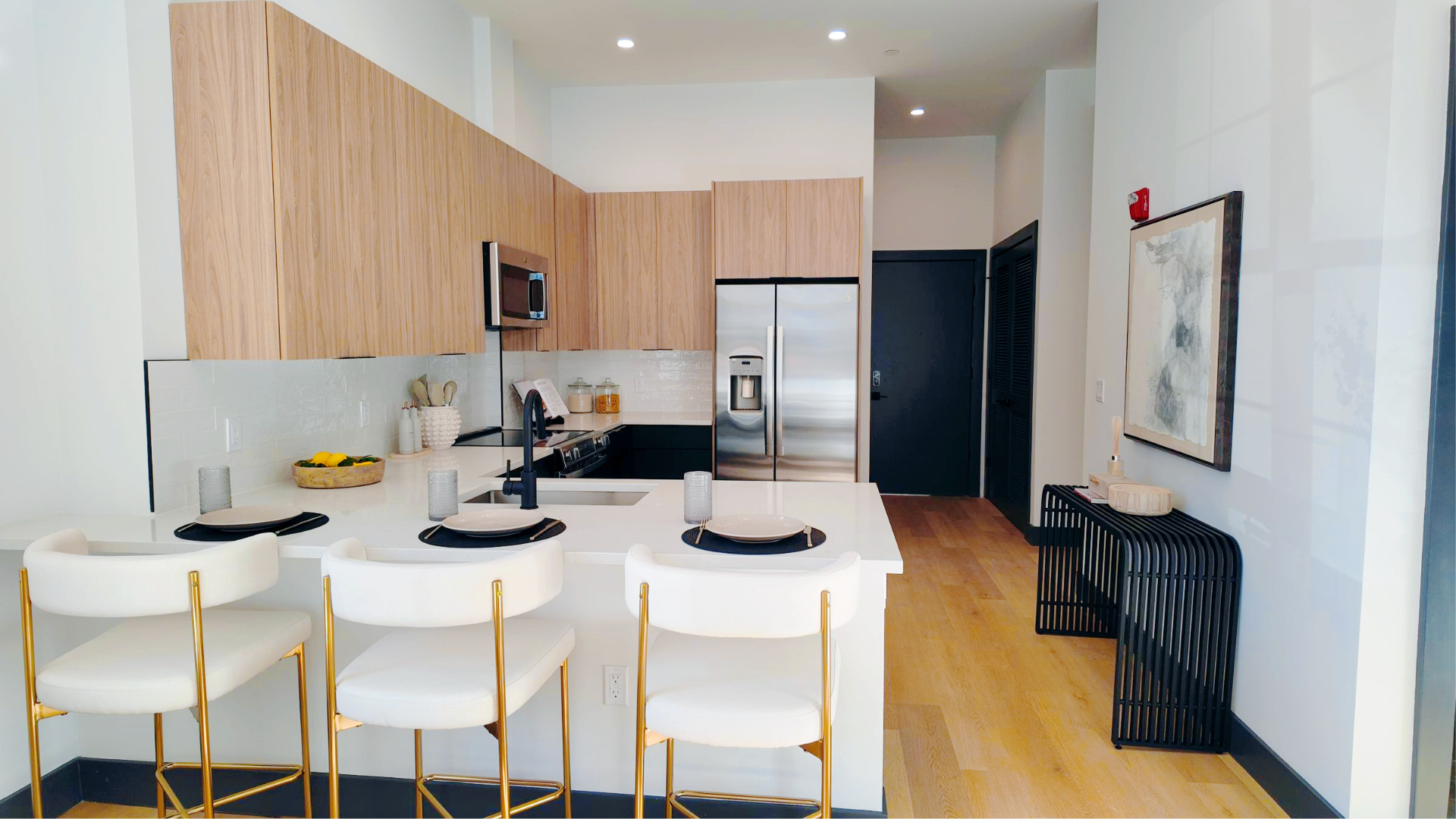 Our thoughtfully designed one and two-bedroom apartments feature spacious layouts with high-end finishes throughout. Each residence includes a comprehensive appliance package complete with in-unit washer and dryer. Residents enjoy access to exceptional community amenities including a state-of-the-art fitness center, sophisticated resident lounge, and an inviting outdoor terrace perfect for relaxation and socializing. Covered parking in our secure garage ensures peace of mind, while private storage rooms provide additional convenience for every lifestyle.