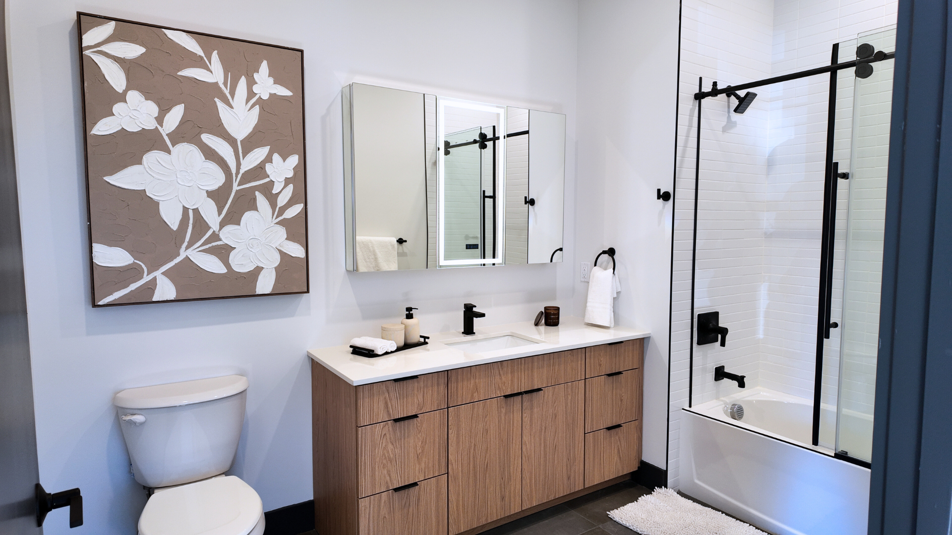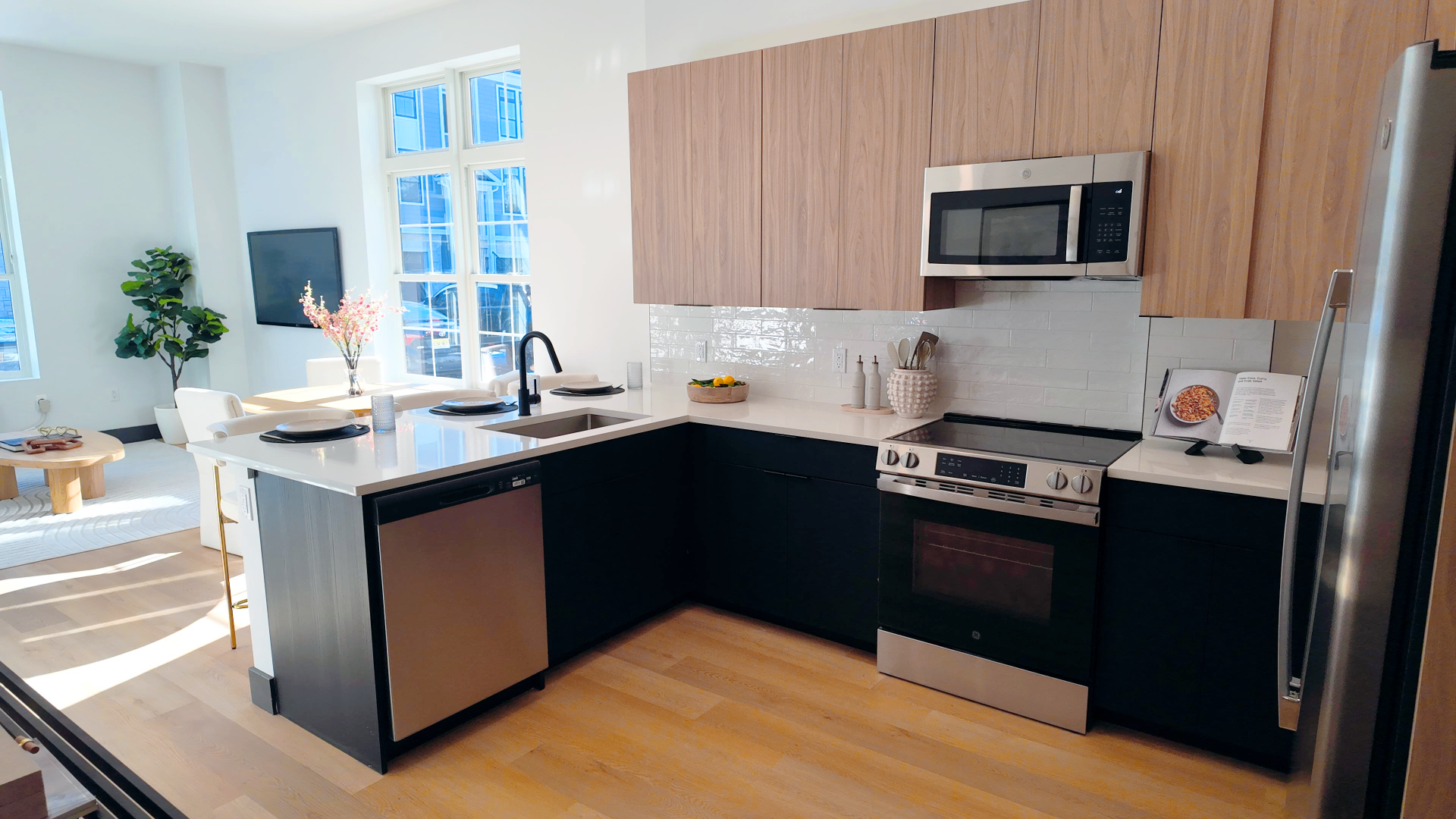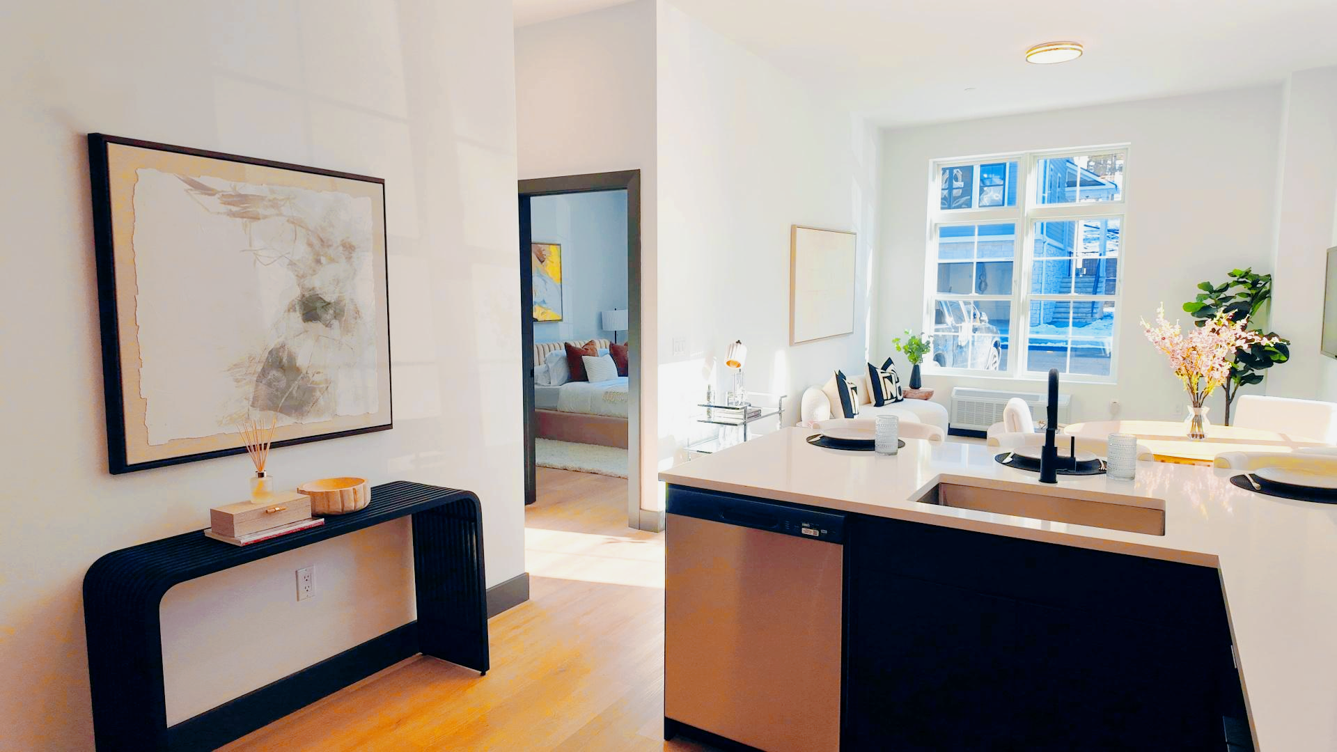 Our thoughtfully designed one and two-bedroom apartments feature spacious layouts with high-end finishes throughout. Each residence includes a comprehensive appliance package complete with in-unit washer and dryer. Residents enjoy access to exceptional community amenities including a state-of-the-art fitness center, sophisticated resident lounge, and an inviting outdoor terrace perfect for relaxation and socializing. Covered parking in our secure garage ensures peace of mind, while private storage rooms provide additional convenience for every lifestyle.