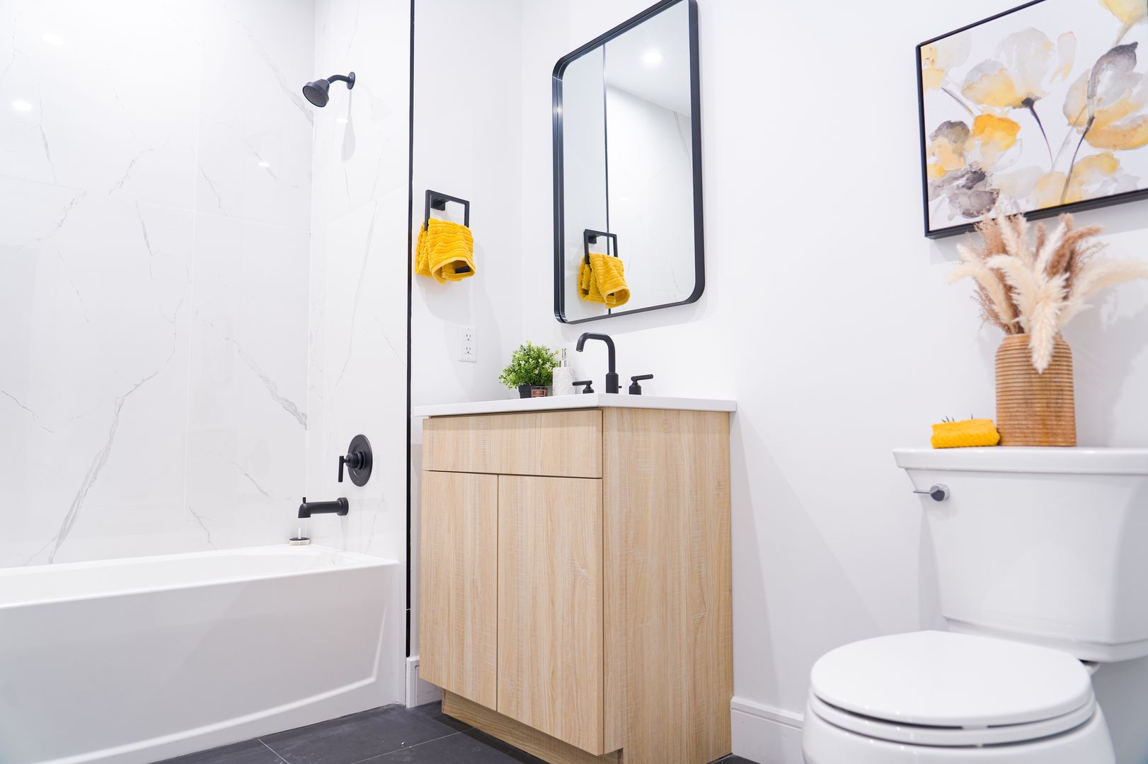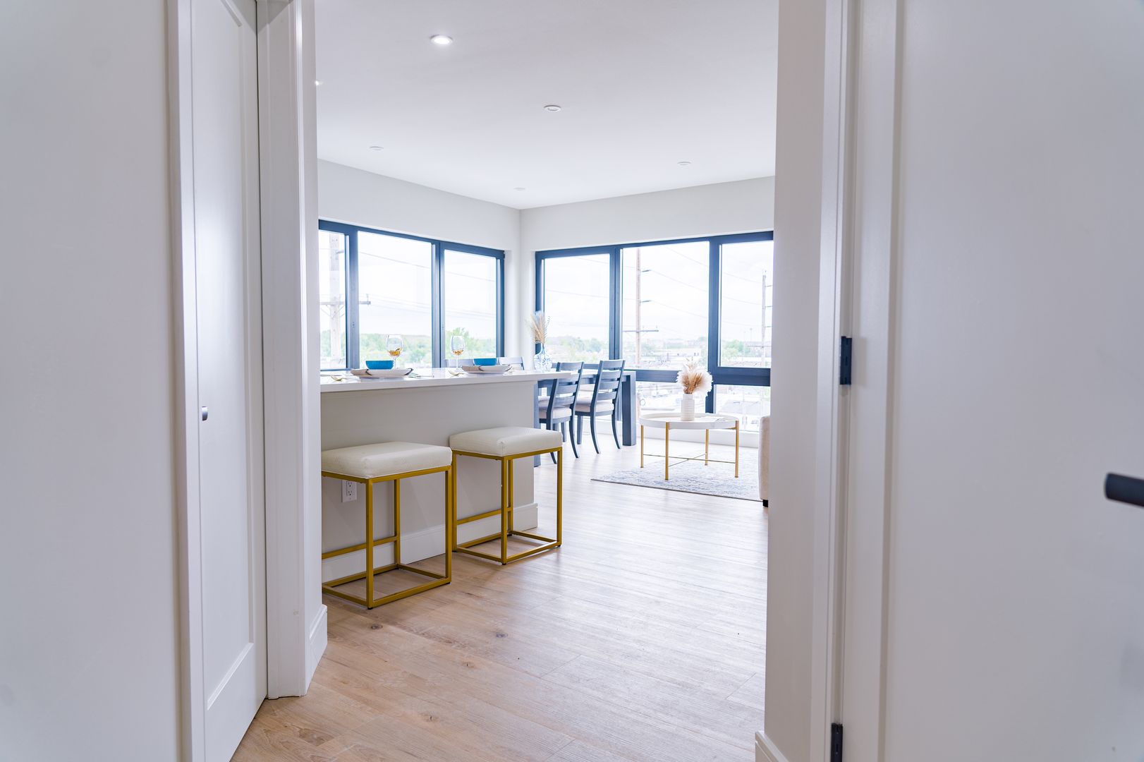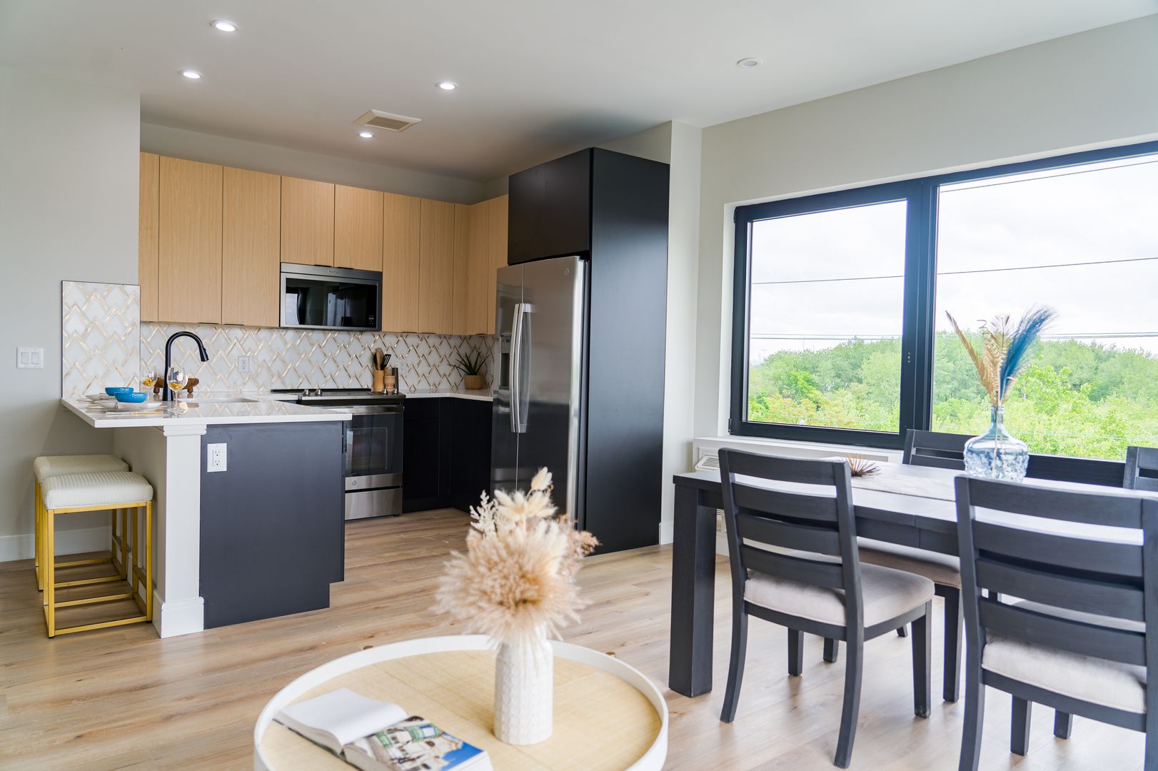 Boasting sleek, contemporary design, all residences include high-end finishes and state-of-the-art amenities. Residents can expect walk-in closets, kitchen with quartz countertops and stainless-steel appliances that open up to the spacious dining/living room areas with LVT Wood Flooring. They also feature GE Appliances including microwave, stove range, dishwasher and in-unit washer & dryer. The bathrooms all have LED mirrored medicine cabinets by the sinks and each room is controlled by a state of the art PTAC Heating and Cooling System, for living comfort.